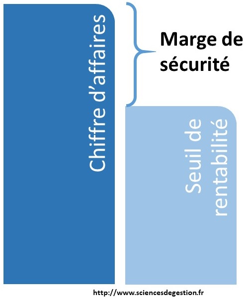 La marge de sécurité représente le montant en valeur absolue de chiffre d’affaires dont l’entreprise peut supporter la baisse avant de devenir déficitaire.