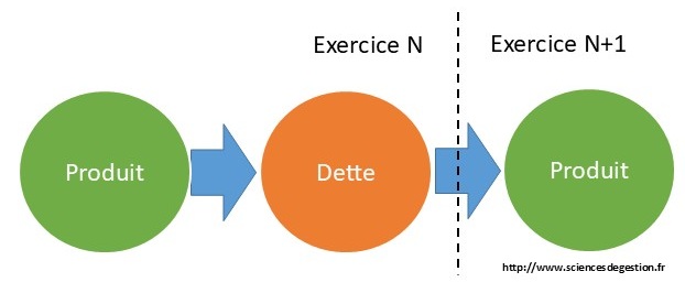Cette écriture contrepasse l’écriture précédente. Elle permet de rattacher le produit au bon exercice tout en éteignant la dette envers le client.