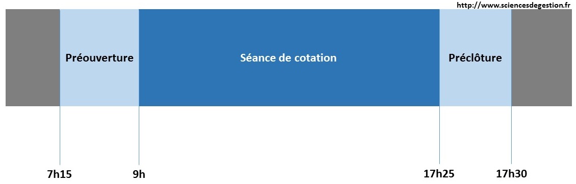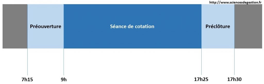 De 7 h 15 à 9 heures : les ordres d’achat et de vente sont intégrés dans le système informatique du CAC pour obtenir un carnet d’ordres mais les transactions ne sont pas effectuées.