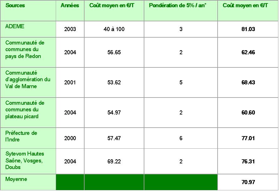 Pondération selon les données d’augmentation annuelle du coût de collecte éditées par le Ministère de l’environnement.