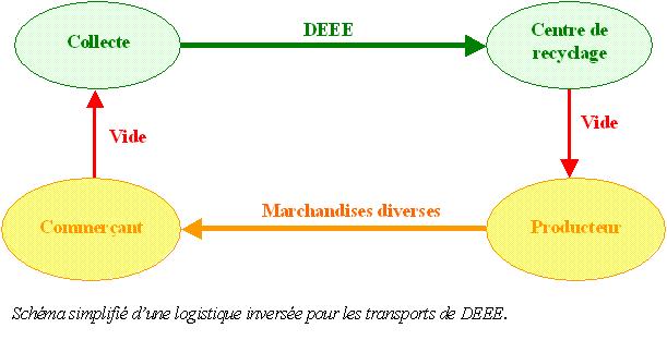Le coût au kilomètre d’un camion de 30 tonnes étant de 1,26 € qu’il soit chargé ou à vide, le transport à vide doit être évité. Des logiques de « Reverse logistics » doivent donc être privilégiées afin de rationaliser le transport. Des camions transportant sur un trajet des DEEE vers un centre de traitement doivent faire le trajet retour chargés. Une non maîtrise de cette organisation entraînerait une perte d’efficience par un doublement du coût logistique.